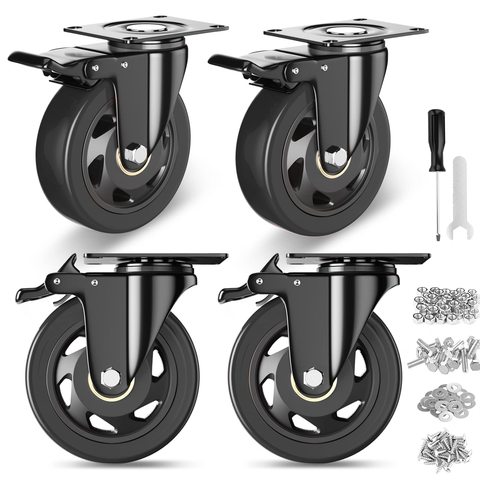 4 Inch Caster Wielen Heavy Duty Casters Met Rem 2200 Lbs, Wielen Voor Meubels En Werkbank Kar (Twee Hardware Kits Omvatten)